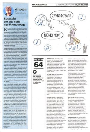 ΜΑΚΕΔΟΝΙΑ ΤΗΣ ΚΥΡΙΑΚΗΣ-26/10/2025