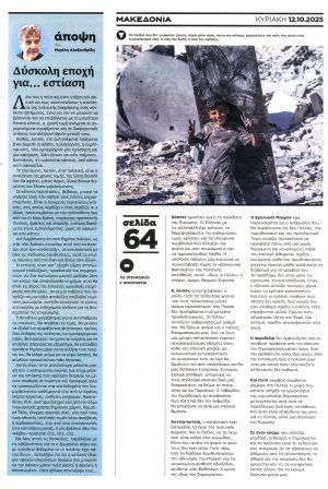 ΜΑΚΕΔΟΝΙΑ ΤΗΣ ΚΥΡΙΑΚΗΣ-12/10/2025