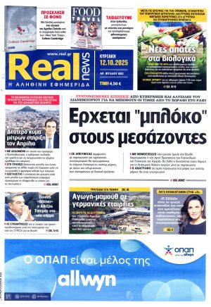 ΤΥΠΟΣ ΤΗΣ ΚΥΡΙΑΚΗΣ-12/10/2025