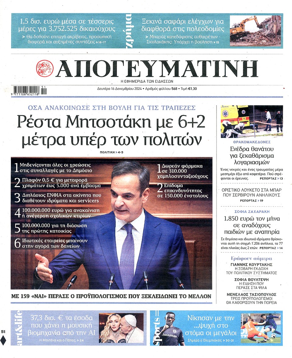 ΑΠΟΓΕΥΜΑΤΙΝΗ-16/12/2024