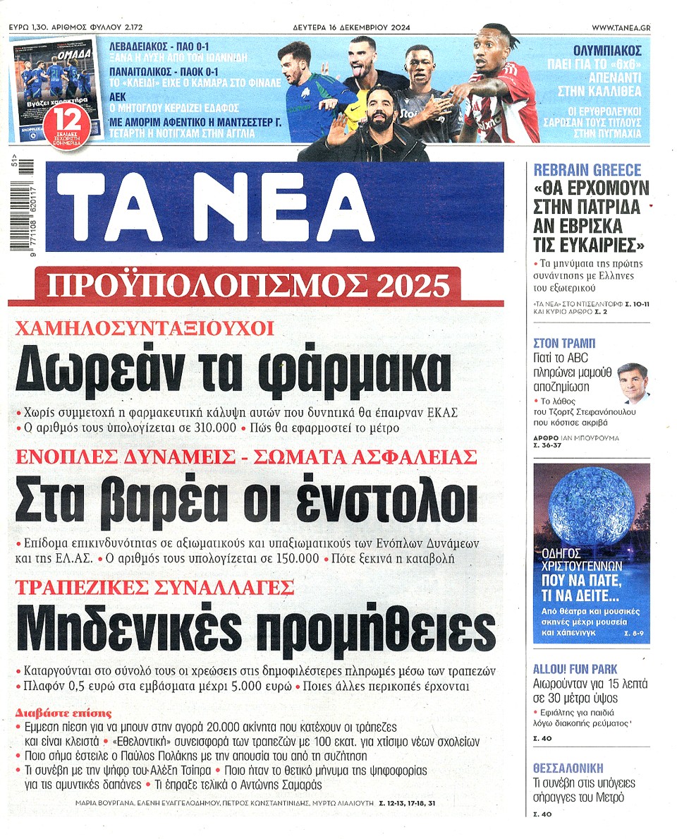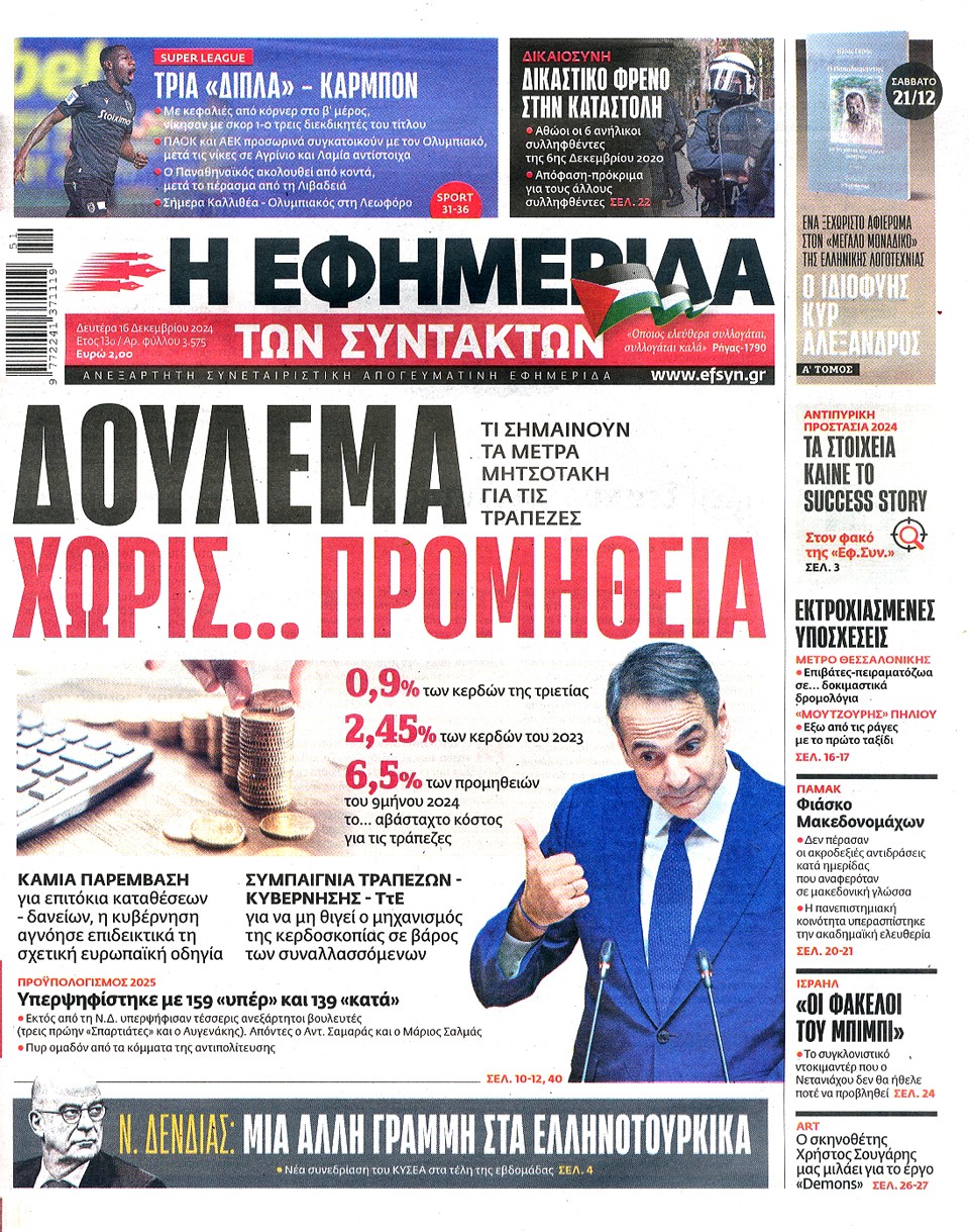 Η ΕΦΗΜΕΡΙΔΑ ΤΩΝ ΣΥΝΤΑΚΤΩΝ-16/12/2024