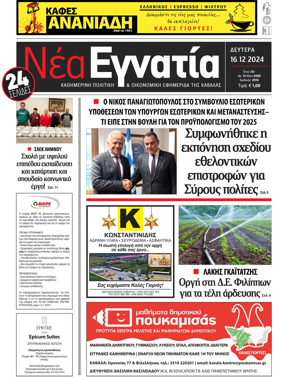ΝΕΑ ΕΓΝΑΤΙΑ-16/12/2024