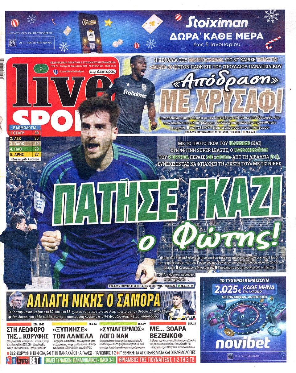 ΦΩΣ ΤΩΝ ΣΠΟΡ-16/12/2024