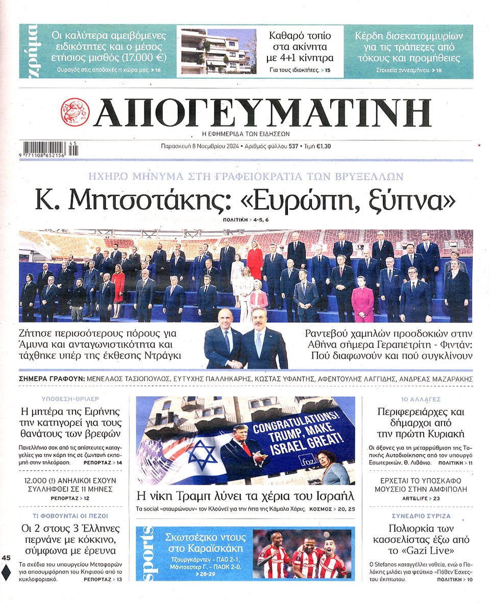 ΑΠΟΓΕΥΜΑΤΙΝΗ-08/11/2024