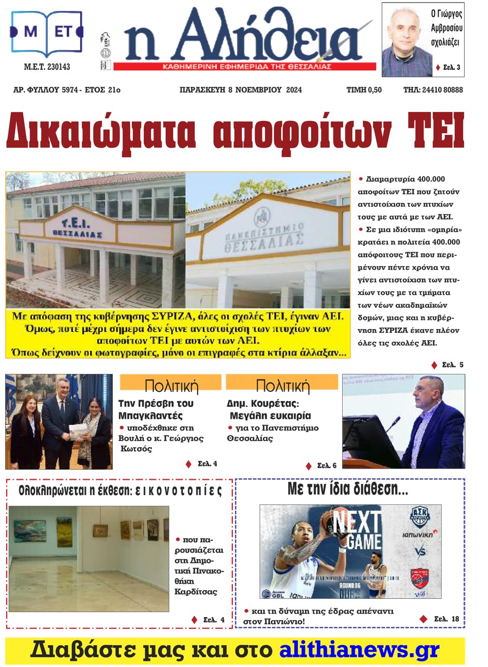 Η ΑΛΗΘΕΙΑ-08/11/2024