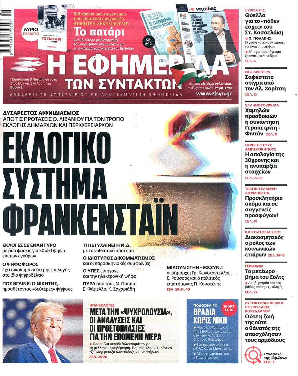 Η ΕΦΗΜΕΡΙΔΑ ΤΩΝ ΣΥΝΤΑΚΤΩΝ-08/11/2024